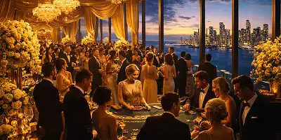 Step into a world of high-stakes glamour and sophistication, featuring opulent décor, elegant entertainment, and the electrifying energy of a premier casino night.