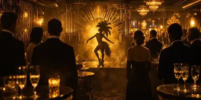 An evening of timeless elegance and mystery, blending refined art-deco design with captivating performances and sumptuous, luxurious details.